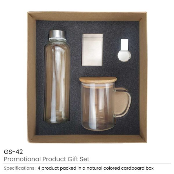 Eco-Friendly Gift Sets GS-42: Contains 4 products as listed beside. packed in a cardboard gift box with a cushion inside for product protection and better presentation.