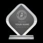 Star-shaped crystal awards with wood base and packed in a wooden presentation box.